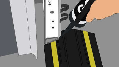 With the garage door closed, place the threshold seal in position and push it up against the back of the door to create a tight seal. The garage door should close onto the front face of the seal (please ensure the garage door shuts correctly and locks with the seal in position – if it does not, then move the threshold back slightly and re-check. It is also advisable at this stage if you have an electrically operated door that the motor continues to operate normally).