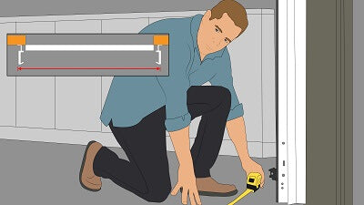 Measure the overall width of the opening between frame or side tracks. Allow an additional 40mm (1 ½”) at each end for the threshold seal t be notched back around the door frame and cut the threshold seal to that required length.