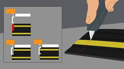Open the garage door and mark along the front edge of the seal. Remove the threshold seal from the floor and mark two parallel lines approx. 10mm (⅓”) inside the existing lines. Then mark an unbroken zigzag line inside the inner parallel lines.