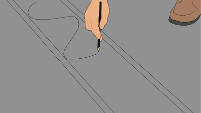 Apply the adhesive to the floor in unbroken lines, following the inner parallel lines marked out in Step 6. Apply an unbroken zigzag line of adhesive between the parallel lines, following the line marked previously.