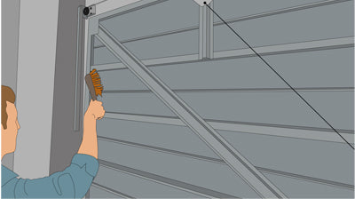 Using a brush, remove all dust and dirt from the back of the garage door. Wipe clean with a cloth as required.