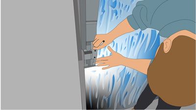 Remove the backing paper from the adhesive pads. Working from one side, secure the insulation material to the pads. Ensure the insulation material is taut when bonding it to the pads. The bottom third of the door is now insulated.